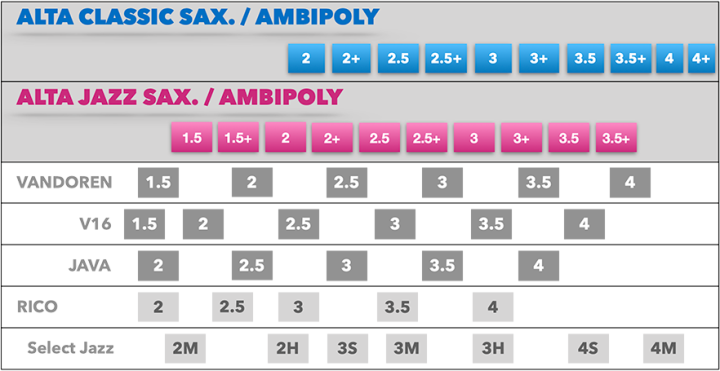 • Representing a new and exciting evolution in reed making, Ambipoly Classic saxophone reeds are the next step in the legacy of traditional reed making, updated for the 21st century. Emulating the profile of a traditional saxophone reed, the Ambipoly Classic is defined by a standard vamp and heart with a traditional tip, and is characterized by a warm, round and robust timbre, with lively response and great projection. The Ambipoly Classic reed will perform superbly from the small club to the grand concert hall, and all venues between.