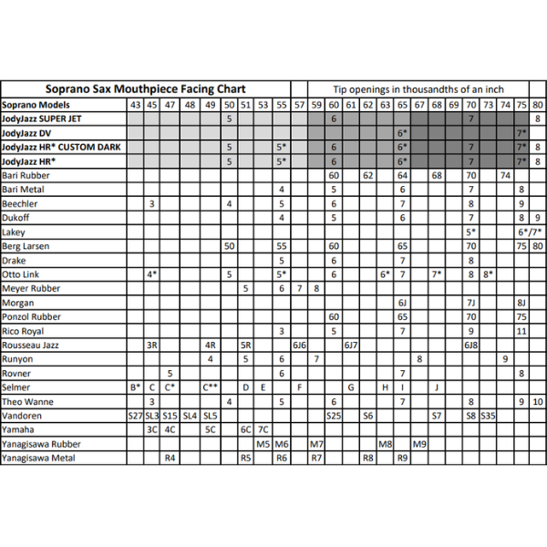 - Các độ mở khác nhau của bec JodyJazz HR* Soprano Sax
