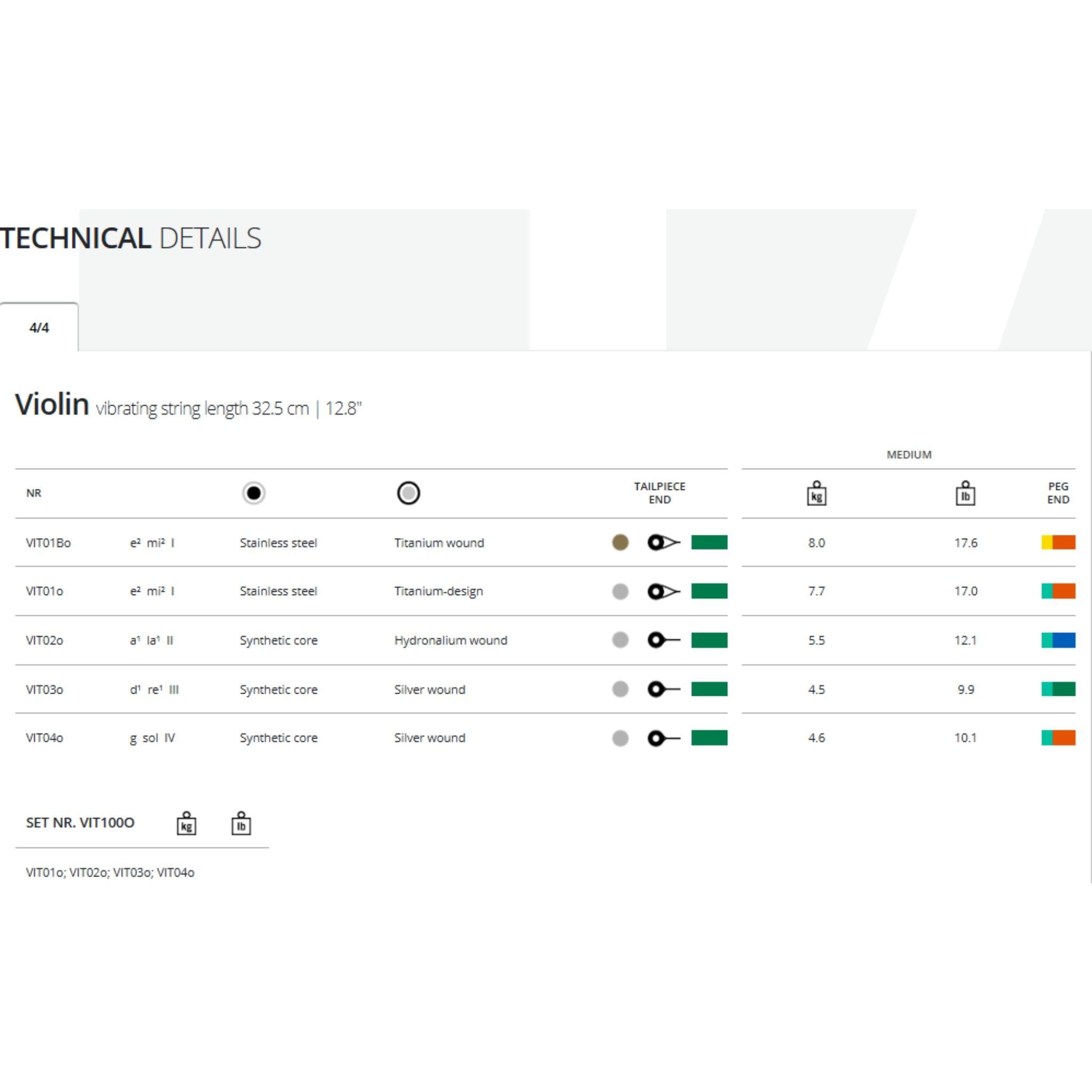 - Bộ Dây đàn Violin Vision Titanium Orchestra 4/4 medium String Thomastik Infeld VIT100o