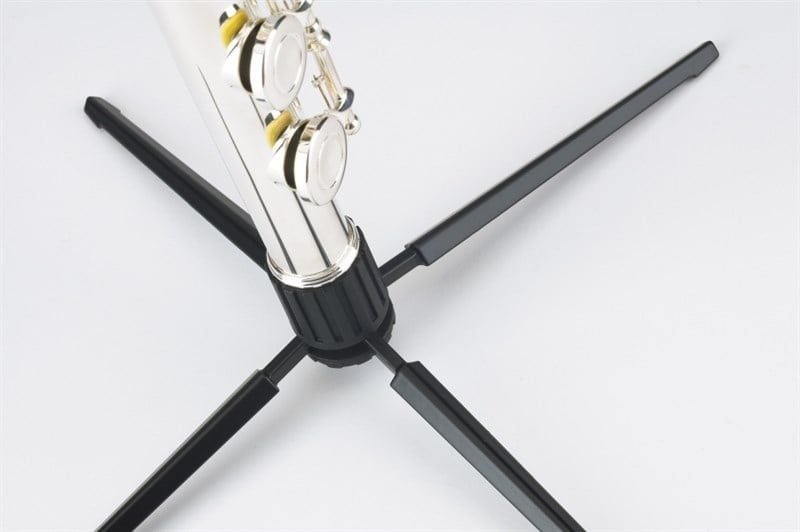 - Unique, compact and extremely light flute stand with 4-leg base for Böhm flutes and/or cross flutes. Plastic peg diameter 18 mm. The zinc die-cast legs ensure a very high stability. Folded up the stand fits in almost every pocket.