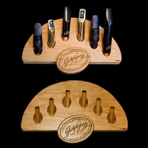 - Beautifully handcrafted Cherry wood Mouthpiece stand will add the finishing touch to your practice room, or teaching studio. Not a necessity for most people admittedly but everyone deserves a little indulgence every once in a while! Holds 6 Saxophone & Clarinet Mouthpieces of all sizes.