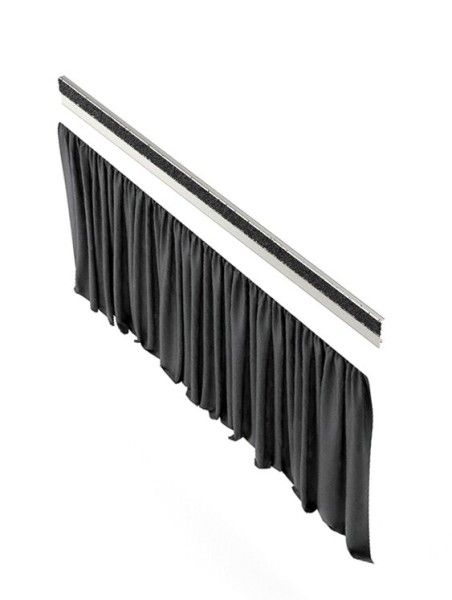 - The curtain is made of durable polyester. Length 1 m, Height 40 cm. Comes with an aluminum profile/frame with a Velcro strip.